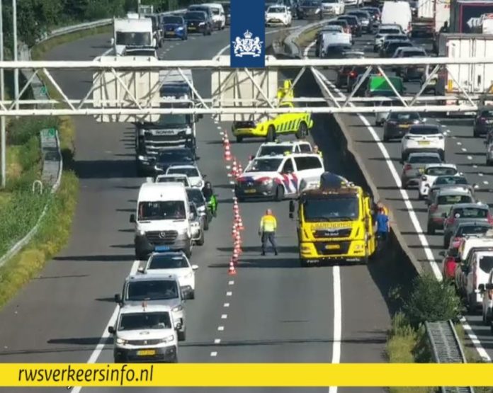 Daarachter liep de vertraging in rap tempo op naar ongeveer anderhalf uur. Ook op de N214 en de N216 door Molenlanden, die als omrijroutes werden gebruikt, was het filerijden geblazen.