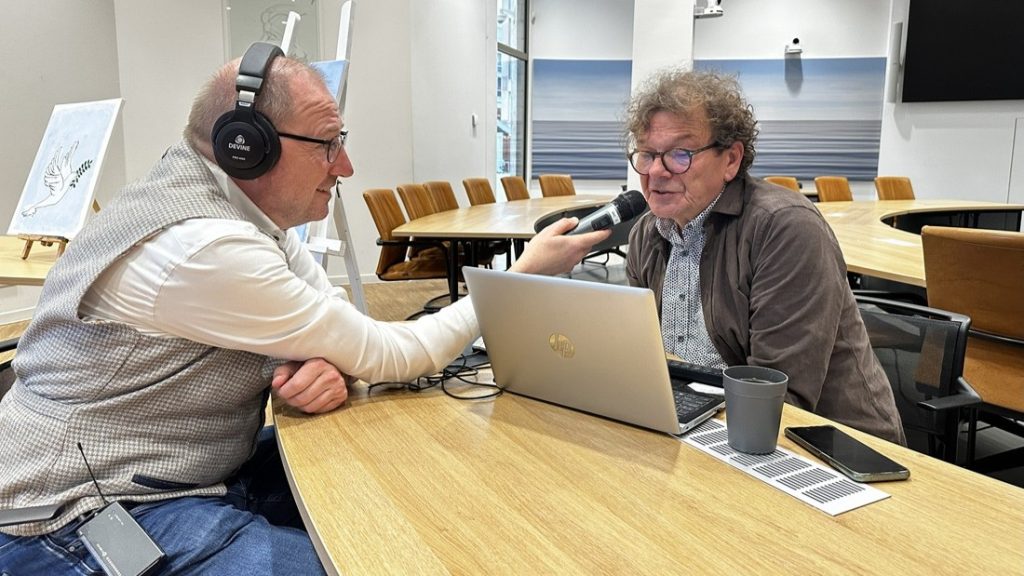 Peter de Liefde leest zijn column voor, foto Hans Hulswit / RTV Papendrecht