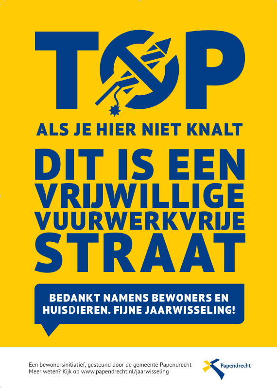 Wie samen met straatgenoten een vrijwillige vuurwerkvrije straat wil aanvragen, kan dit doen vóór 10 december via deze link. De aanvraag kan eventueel ook telefonisch via 14 078.