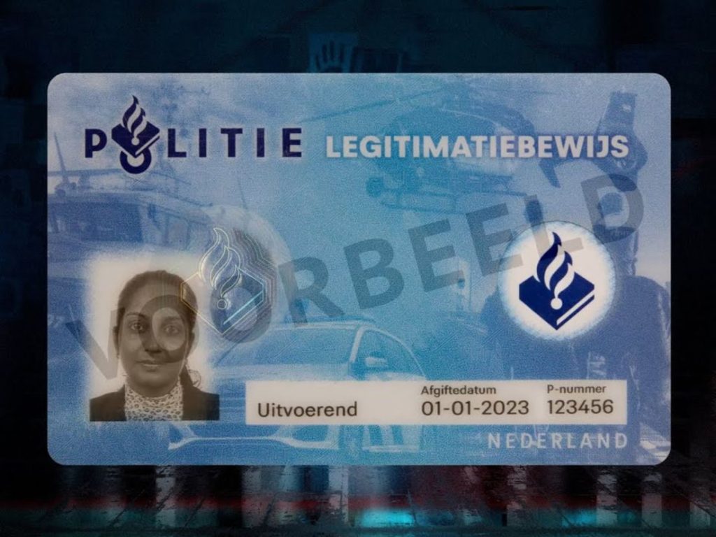 Het legitimatiebewijs van een politiemedewerker is een plastic pasje met naam, personeelsnummer en zowel links als rechts een herkenbaar politielogo. Ook staat er een pasfoto op van de betreffende persoon in burgerkleding.