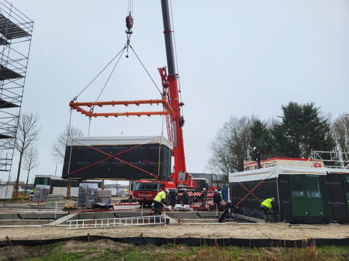 Aan de Laan van Riga in Dordrecht zijn deze week de eerste van 56 flexwoning neergezet. De komende drie jaar kunnen er Oekraïense vluchtelingen wonen, daarna gaan de woonunits de huizenmarkt op.