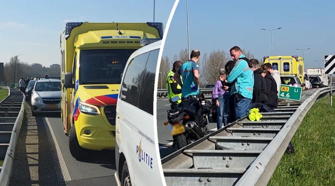 Een motorrijder en automobilist zijn donderdagochtend op elkaar gebotst op de N3 bij Dordrecht. Beide bestuurders bleven ongedeerd.