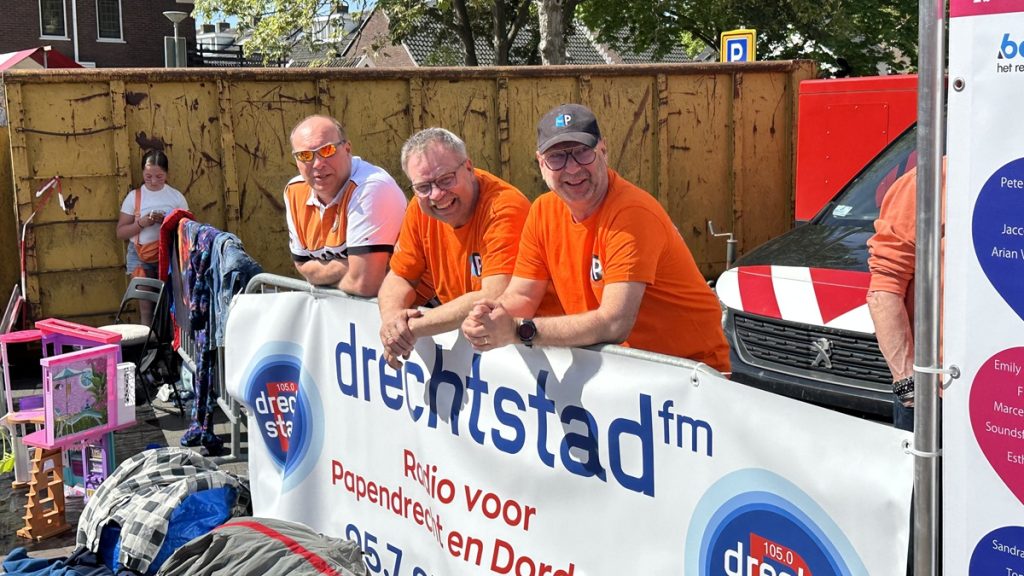 Drechtstad FM stond met een mobiele studio op de Eilandstraat en zond het geheel live uit.