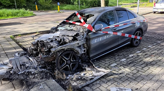 Een auto is in de nacht van zaterdag op zondag verwoest door brand. De Mercedes stond geparkeerd in de Halleyweg in de Dordtse wijk Sterrenburg. Het voertuig is compleet verwoest, is zondagochtend goed te zien.