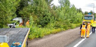 Busje raakt van A16 en verdwijnt in de bosjes