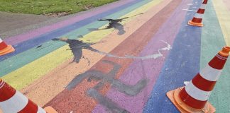 Hakenkruis geschilderd op regenboog-zebrapad in Dordrecht