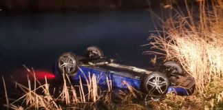 Auto op z’n kop in de sloot, vermoedelijk door gladheid