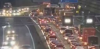 Lange file op A15 tijdens ochtendspits
